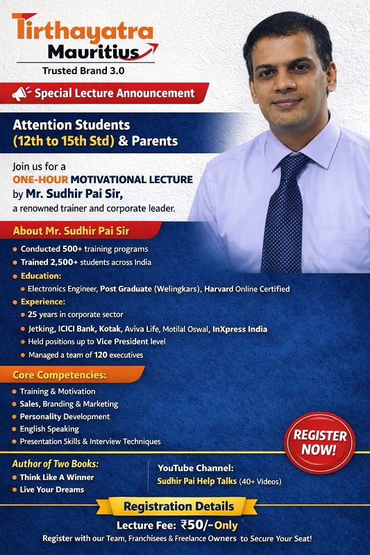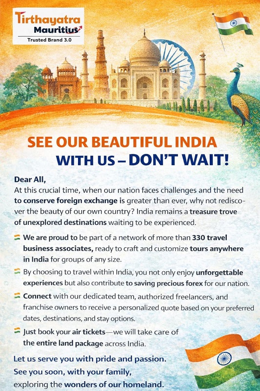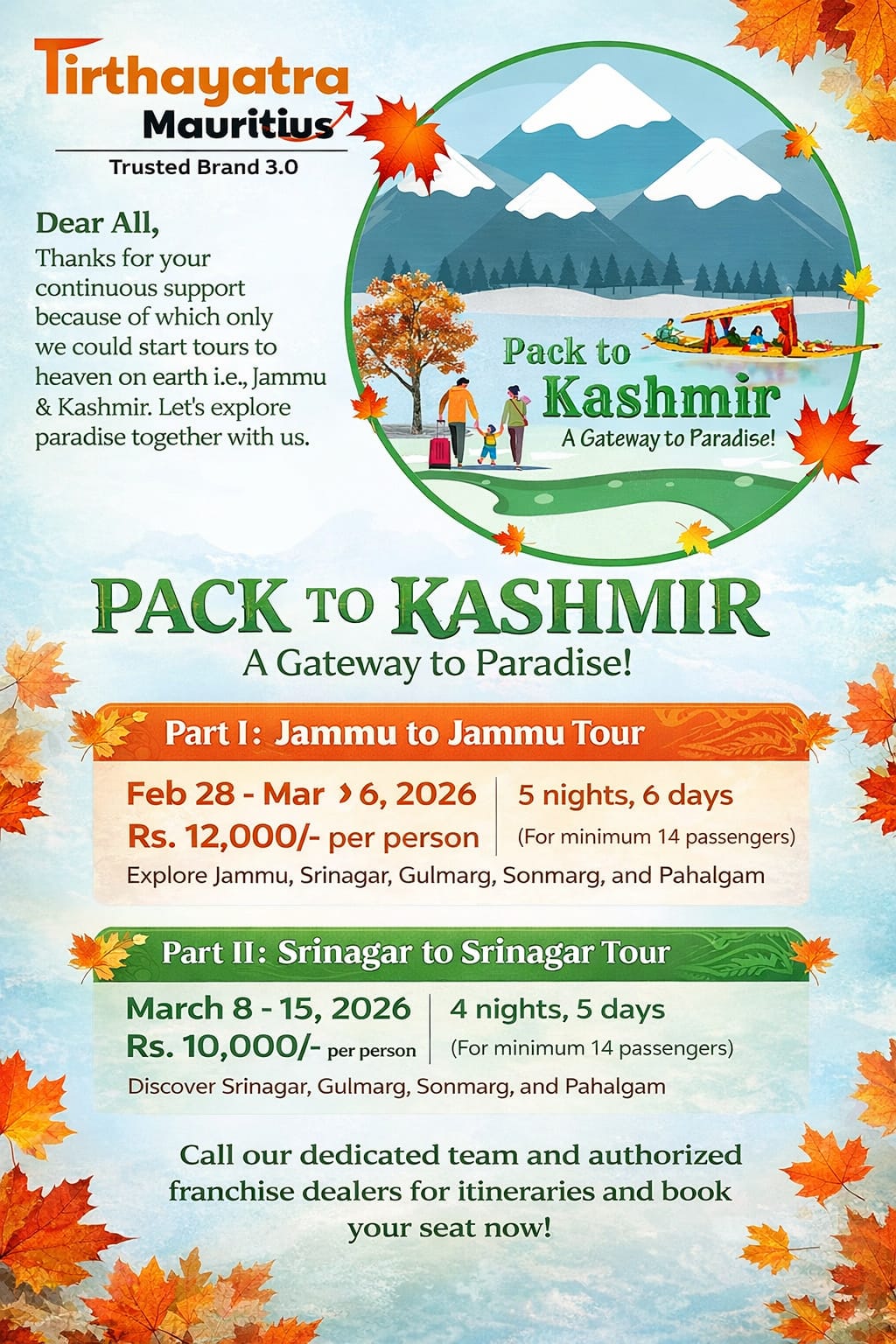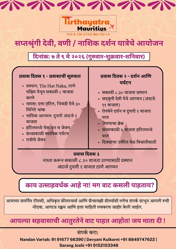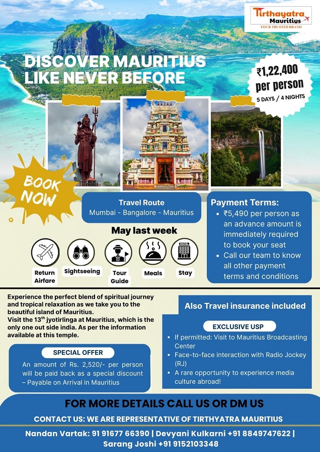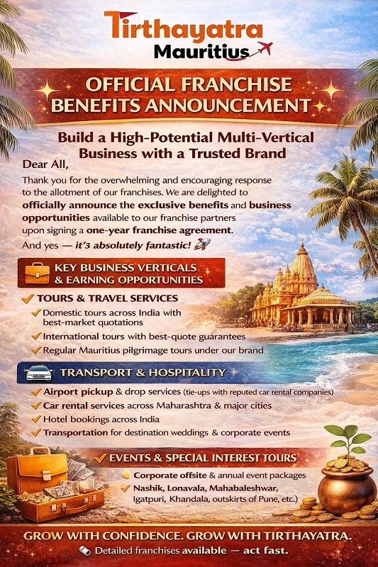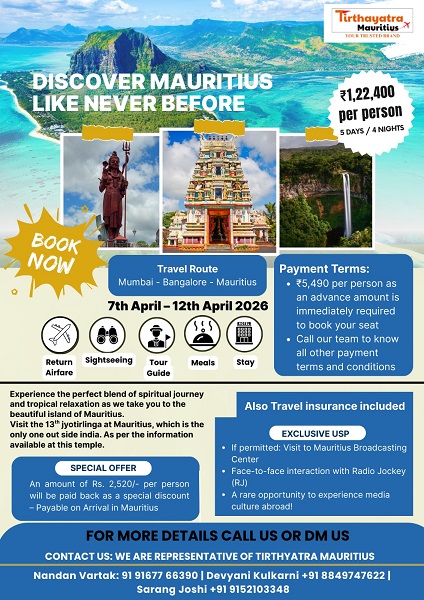 We have clubbed Tirthayatra and Unseen Mauritius Spots/Tours. It was a good and memorable experience in Mauritius. We wish all the success to Tirthayatra Management.