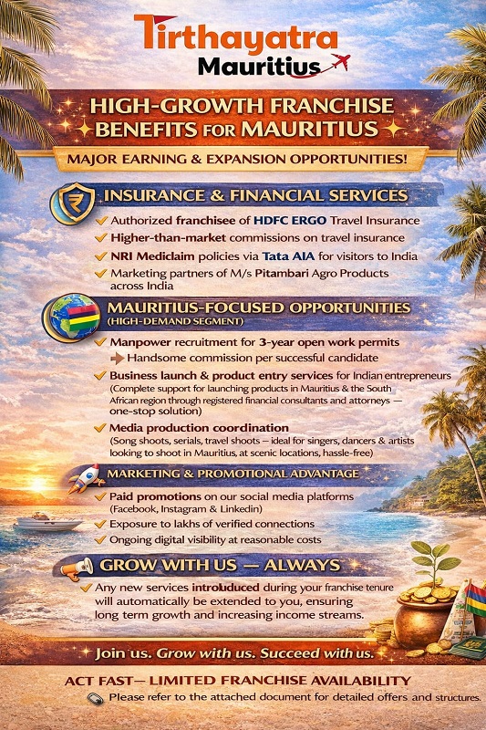 Majority of the tour operators are arranging exotic tours to Mauritius but for elderly people and people who believe on visiting religious places all over the world, Mauritius is also good destination to visit. This is unique concept brought in for the first time by us for all the world. Know More >>